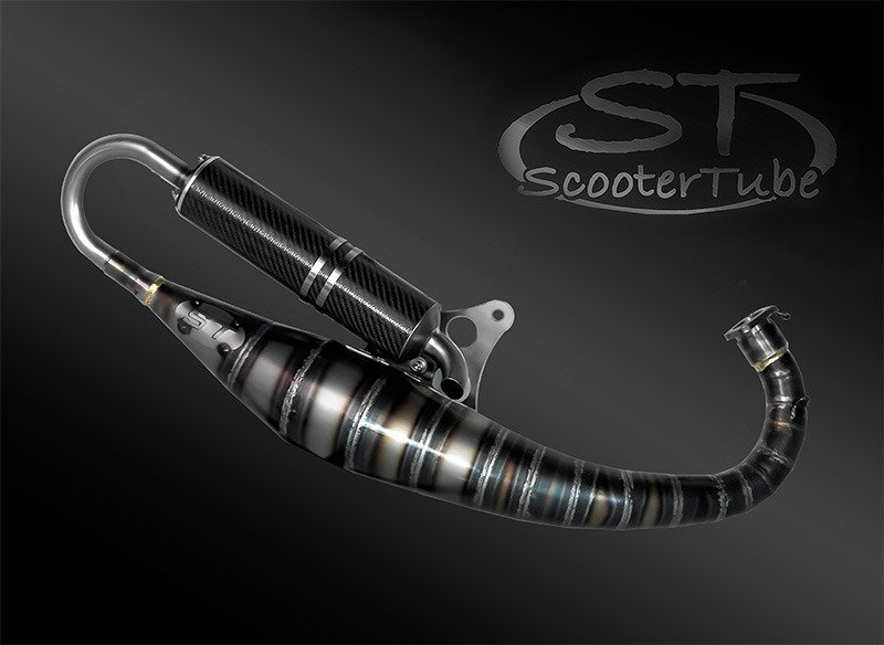 Der ST-180R Carbon ist ein Hochleistungs-Auspuff, der speziell für Piaggio-Motoren mit Gilardoni 180cc oder Malossi 180cc Zylindern entwickelt wurde.