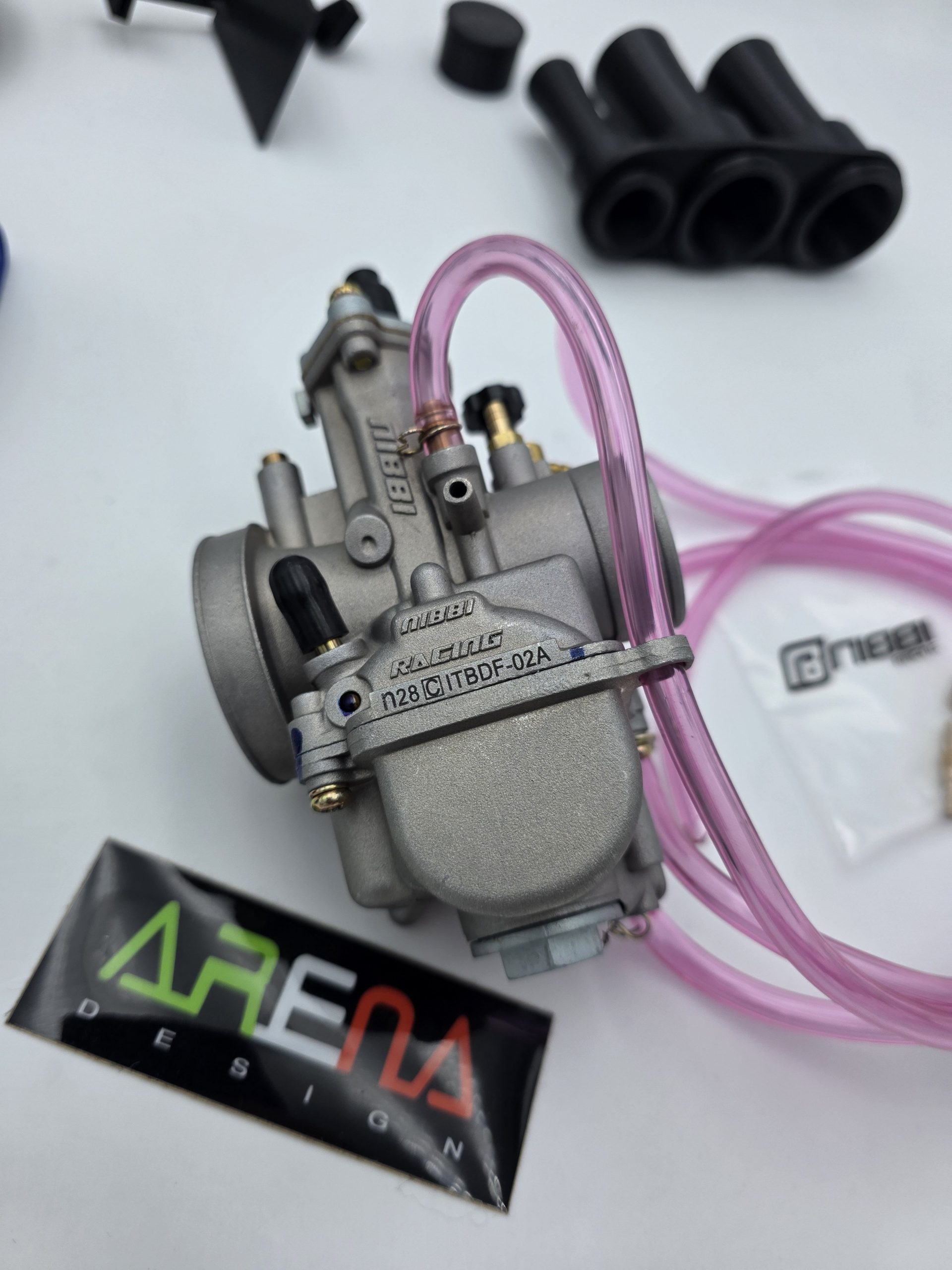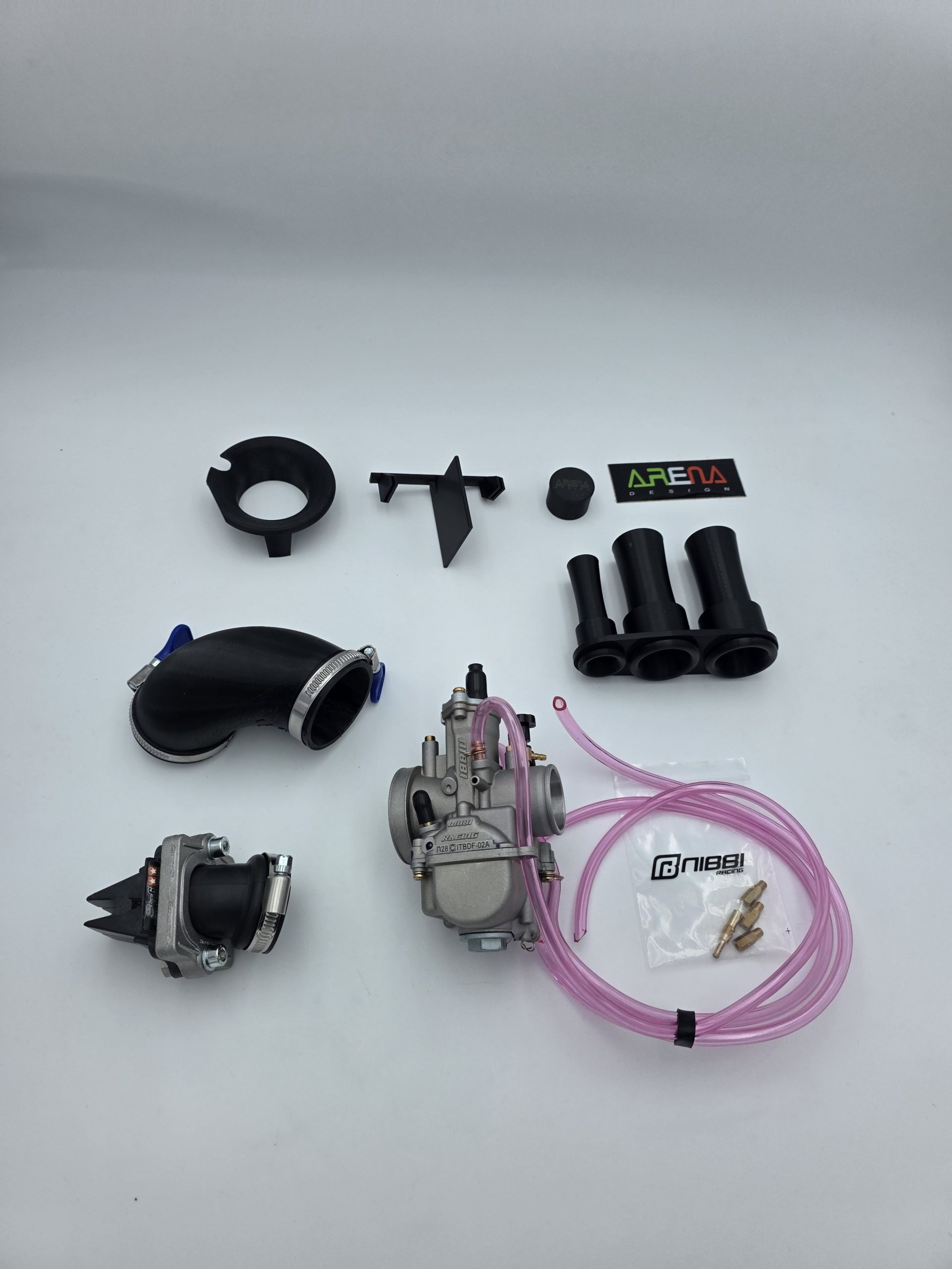 NIBBI RACING Vergaser 28 Silver mit EVO bearbeitung, Ölanschluß und Unterdruckanschluss + GEN3 Airboxumbaukit + großen Ansaugschlauch inkl. Schellen + Vforce3 Membrankasten + Malossi 360°Ansaugstutzen